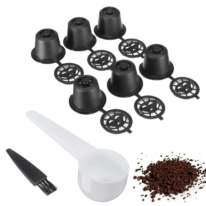 .Gallery of 6PCS Reusable Coffee Capsules+Spoon+Brush Reusable Refilling Filter For Nespresso Black Refillable Coffee Capsule Cup Machine